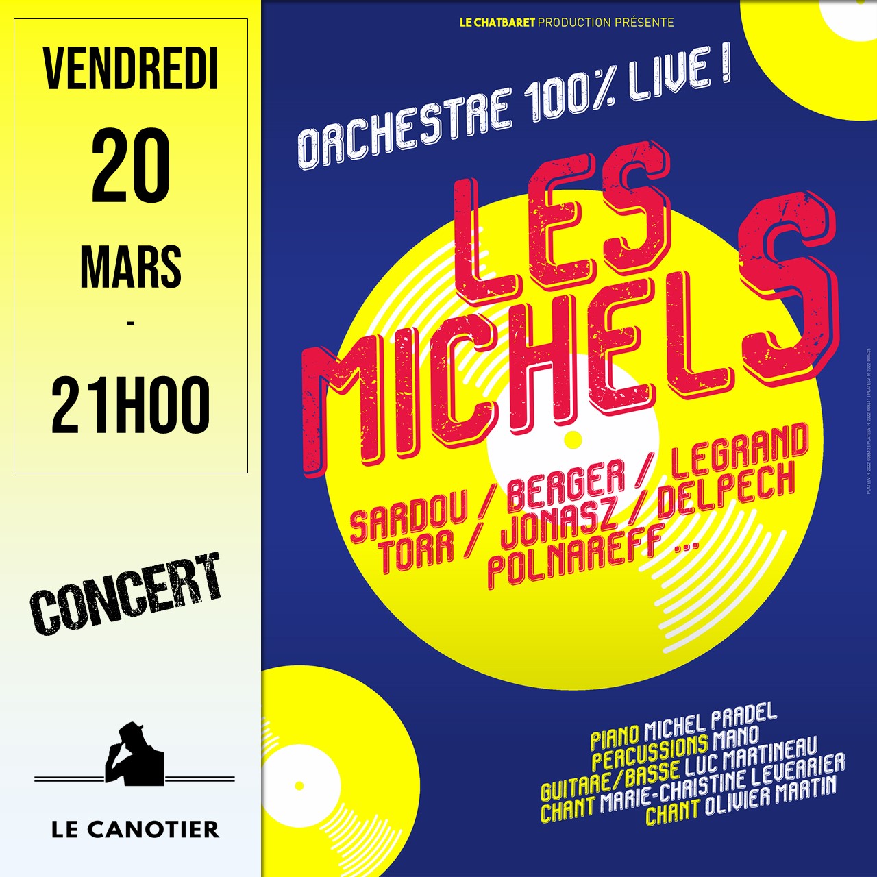 Bienvenue au CanotierVotre espace de divertissement !SAINT-BREVIN-LES-PINS 2026-02-25 Mythos et la clé des Dieux2026-02-27 Lendemain de soirée2026-02-28 Les aventures farfelues2026-03-13 Party 802026-03-20 Les MichelS2026-03-27 Sortez-moi de là Spectacles Spectacles Enfants Après-Midi &Soirées Dansantes Évènements& Séminaire Découvrez nos prochains évènements. Évènements 22 Fév 22 Fév Orchestre Dominique MOISAN 22/02/2026 - Le Canotier, 7 avenue des Frères Lumière, Saint-Brévin-les-Pins, France Après-Midi Dansant 25 Fév 25 Fév Mythos & la clé des Dieux 25/02/2026 Le Canotier, 7 avenue des Frères Lumière, Saint-Brévin-les-Pins, France Spectacle Enfant 3-10 ans 27 Fév 27 Fév Lendemain de Soirée – Comédie 27/02/2026 à 20:30 Le Canotier, 7 avenue des Frères Lumière, Saint-Brévin-les-Pins, France Comédie 28 Fév 28 Fév L’aventure farfelue du Pr ZIKMU 28/02/2026 Le Canotier, 7 avenue des Frères Lumière, Saint-Brévin-les-Pins, France Spectacle Enfant 3-10 ans 01 Mar 01 Mar Orchestre Damien ROY 01/03/2026 - Le Canotier, 7 avenue des Frères Lumière, Saint-Brévin-les-Pins, France Après-Midi Dansant 05 Mar 05 Mar Orchestre Emmanuel ROLLAND 05/03/2026 - Le Canotier, 7 avenue des Frères Lumière, Saint-Brévin-les-Pins, France Après-Midi Dansant 08 Mar 08 Mar Orchestre ENVOL 08/03/2026 - Le Canotier, 7 avenue des Frères Lumière, Saint-Brévin-les-Pins, France Après-Midi Dansant 13 Mar 13 Mar Soirée Party 80 13/03/2026 à 20:00 Le Canotier, 7 avenue des Frères Lumière, Saint-Brévin-les-Pins, France Soirée Dansante 15 Mar 15 Mar Orchestre Aurélie GUSTO 15/03/2026 - Le Canotier, 7 avenue des Frères Lumière, Saint-Brévin-les-Pins, France Après-Midi Dansant Charger plus d’annonces Contactez-nous Veuillez activer JavaScript dans votre navigateur pour remplir ce formulaire.Identité *PrénomNomAdresse Email *Votre Message *CommentEnvoyer